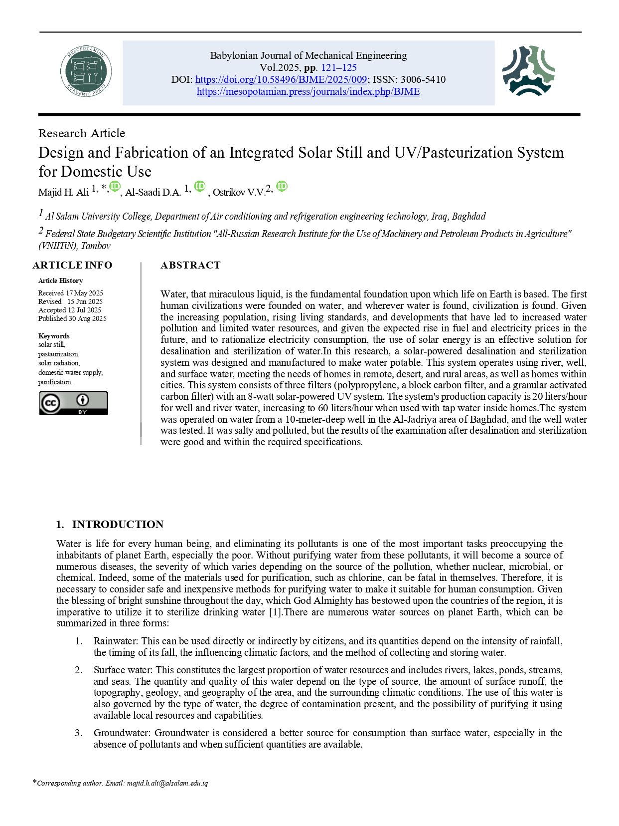 The Babylonian Journal of Mechanical Engineering (EISSN: 3006-5410) is a distinguished publication dedicated to advancing the field of mechanical engineering. This journal welcomes high-quality contributions from researchers and engineers across various areas, fostering innovation in thermodynamics, materials science, robotics, fluid mechanics, and structural analysis