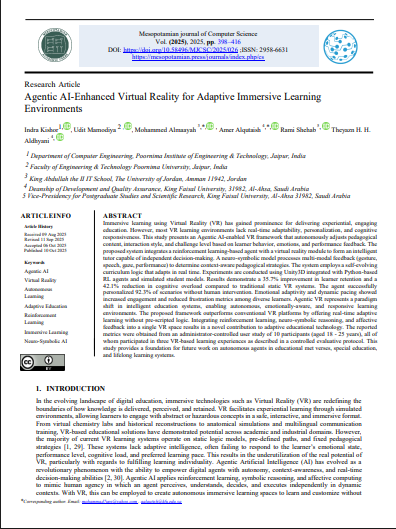 [17] Sudharson, D., Malik, R., Sathya, R., Vaishali, V., Balavedhaa, S., & Gautham, S. (2024). A Novel Adaptive Framework for Immersive Learning Using VR in Education. 1–26. https://doi.org/10.1002/9781394200498.ch1